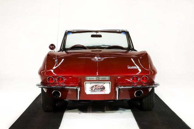 EXTERIOR: Beautiful Vette! It presents itself very well, the body is straight and fits exceptionally very nicely. The doors shut nice, headlights open properly. Repainted Milano Maroon with a smooth glossy finish. There are minor flaws that won\'t get noticed unless you are looking for them. It has a new top and it\'s upgraded with a rich looking tan canvas convertible. Overall nice glass, trim and weatherstrips. New taillight cones, front grille and mirrors. Upgraded LED headlights. We just installed new tires in the 15 inch rally wheels.