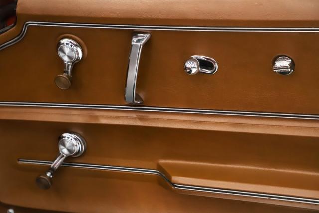 INTERIOR: I think the saddle interior is very rich looking too. I\'m sitting in the car now and both dash pads are in great shape. The original gauges are functioning, it has the correct redline tachometer for a 350hp engine and the clock was upgraded with quartz movement. The original AM-FM radio is in place, the center console is clean with the correct reverse lockout shifter. It\'s the first year the e-brake was moved to the console. The seat cushions feel nice and firm, the upholstery is in very good shape. The door panels look like they\'ve been replaced along with carpet front to back. Overall very nice, unabused condition.