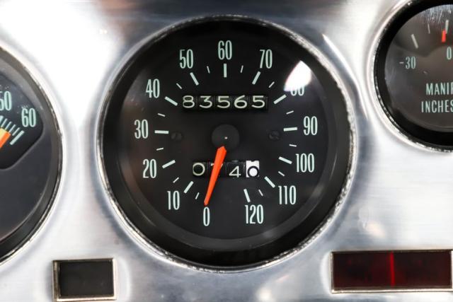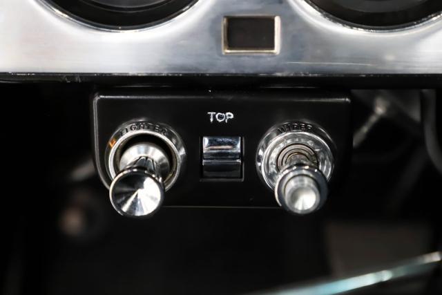 TRUNK COMPARTMENT: So, the trunk is in the front and under the lid and the jamb are painted slick like the car. Inside is clean metal with a neat spatter finish. It is complete with mat, washers, jack and master cylinder. The reproduction battery is included but it wasn\'t very reliable, we installed a new battery.