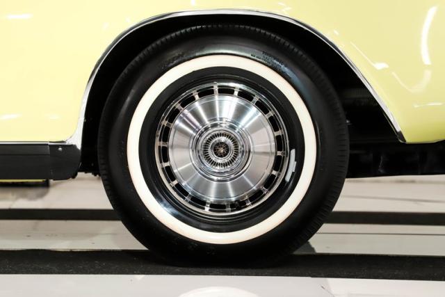 EXTERIOR: Refinished right back to factory condition. No, it\'s better! The body was professionally restored and is straight with excellent fit. Repainted Goldwood Yellow with a smooth and glossy finish. All the trim, emblems, bumpers, handles were replaced. I especially liked the emblem on the trunk lid! New windshield and weatherstrips. The black power top was completely restored. It is correctly restored right down to the reproduction tires and deluxe hubcaps.