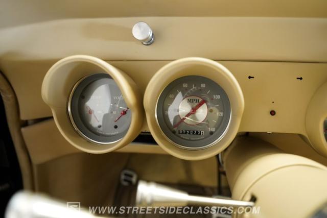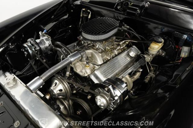Under the hood, this Studebaker is powered by a robust 350 V8 engine paired with a smooth-shifting 3-speed TH350 automatic transmission. Performance enhancements include an Edelbrock single 4-barrel carburetor, Edelbrock intake manifold, aluminum radiator with electric fan, chrome pulley system, and a new A/C compressor for reliable comfort. The custom Mustang II-style front suspension features tubular control arms, coilovers, and rack-and-pinion steering, while the braking system has been updated with power front discs and rear drums. This car is engineered for both power and reliability, making every drive engaging and enjoyable.