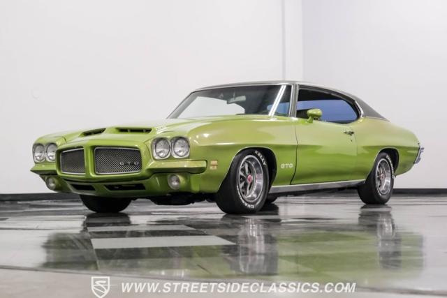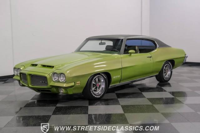 This 1971 Pontiac GTO combines raw muscle car power with grand touring refinement. Its freshly rebuilt 455 V8, four-speed manual, and attention-grabbing Tropical Lime paint make it an ideal choice for collectors and enthusiasts. Call today!
