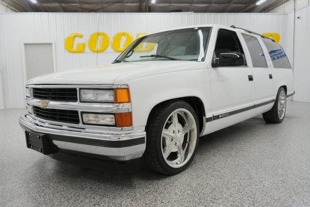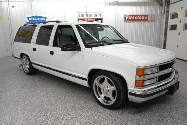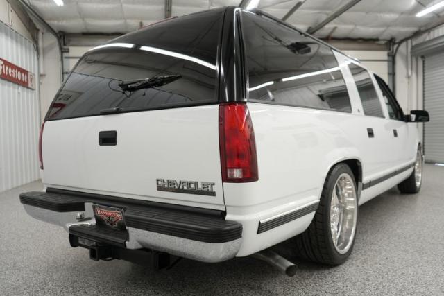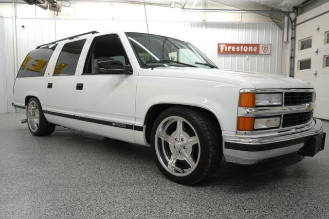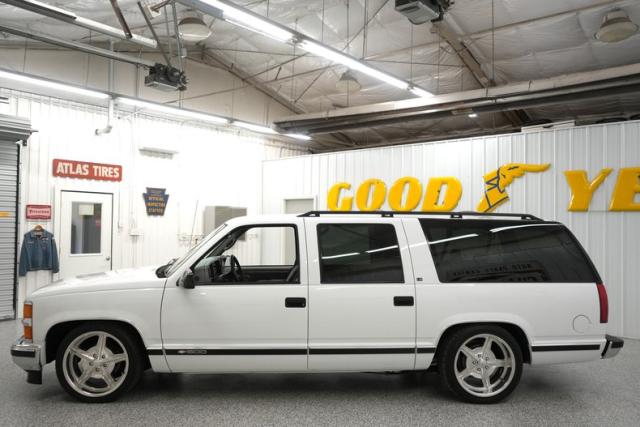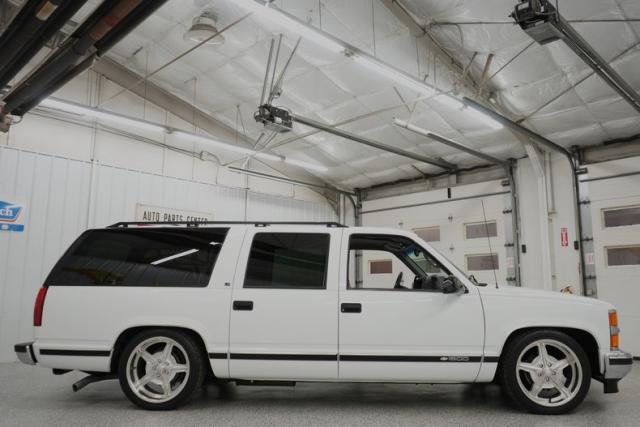 THIS VEHICLE IS LOCATED IN OUR PA. SHOWROOM, FREE SHIPPING AND WARRANTY !!!!! 5.7L Vortec Chevrolet Engine. 700R4 Automatic Transmission. Summit White Exterior. Correct Color. Original Paint. Tinted Windows. Front Tires: 245/40ZR20. Rear Tires: 275/40ZR20. Billet Specialties Wheels. 20 Inch Wheels. Nitto Tires. 82,958 Original Miles. Gray Cloth Interior. Front Bucket Seats. Center Console. Rear Bench Seat. Third Row Bench Seat. Gray Headliner. Gray Door Panels. Gray Carpeting. Black Driver & Passenger Side Mirrors. Power Door Locks. Power Windows. Power Steering. Power Brakes. Air Conditioning. Rear Climate Control. Power Front Seats. Seat Belts. Chrome Front & Rear Bumpers. Tow Hitch Receiver. Roof Rails. Side Moldings. Factory Gauges. Factory Radio. All Original. Texas Vehicle. Power Mirrors. Original Owners Manual. Black Window Trim. Gray Dash. Column Shift. RWD. Belltech Lowered Suspension. C-Notch Kit.