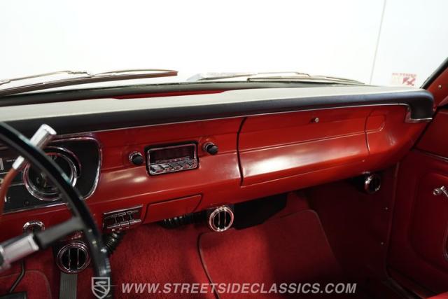 Inside, you\'ll find a clean, stock-inspired interior with classic style and comfort. The black vinyl bench seat is accented by vibrant red armrests, while the headliner, door panels, and carpet are all in good condition. Factory A/C controls and stock gauges keep the original vibe alive, and an upgraded aftermarket radio adds a modern touch for your driving soundtrack. The column shifter and emergency brake handle above the kick panel add to the vintage feel, making every drive a delight.