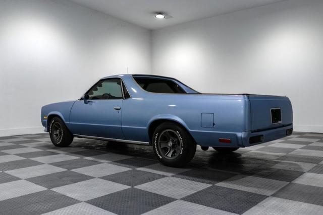 The exterior is finished in a sharp blue that pairs perfectly with the aggressive stance created by the cowl induction hood. Out back, the bed is clean and functional with a fitted cover, staying true to the El Camino\'s dual-purpose nature. Whether you are hauling gear or just showing it off at a cruise night, it delivers the look.