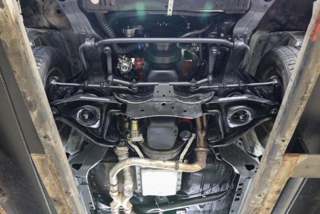 Under the hood sits a healthy 350ci V8 that brings the kind of torque and sound that made small block Chevys legendary. It breathes through long tube headers and a dual exhaust system, backed by an aluminum intake for improved flow. A March serpentine belt system keeps everything tight and efficient, while an aluminum radiator with dual electric fans helps it stay cool when the heat is on. This is the kind of setup that feels right whether you are cruising or leaning into the throttle.