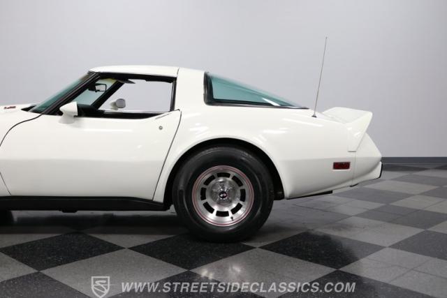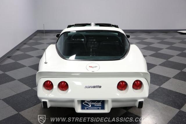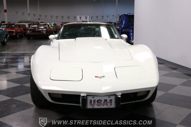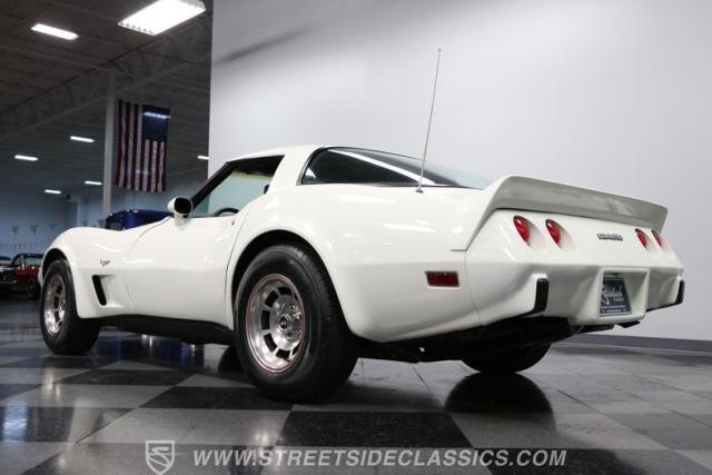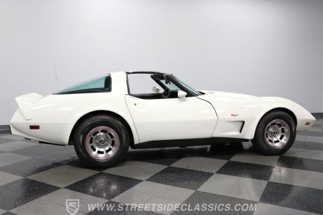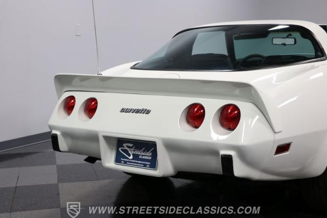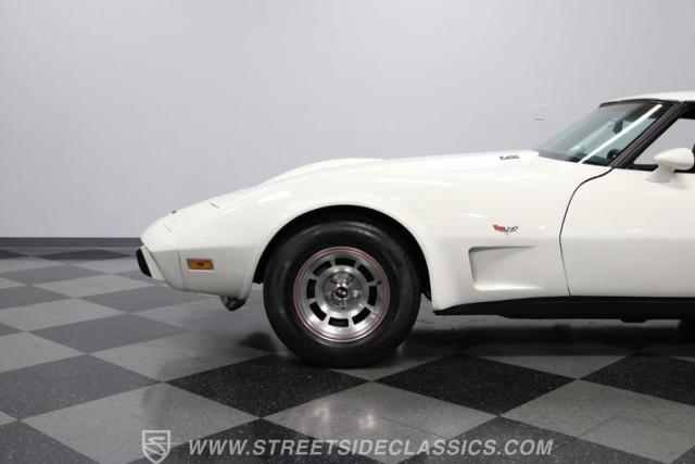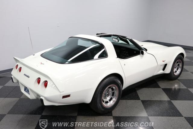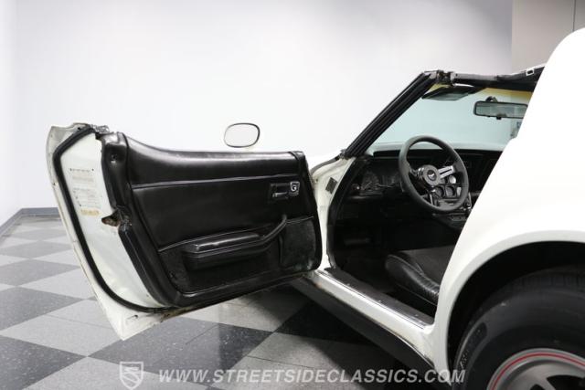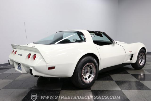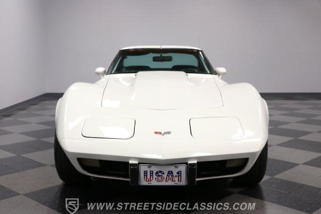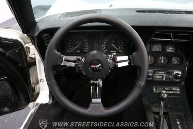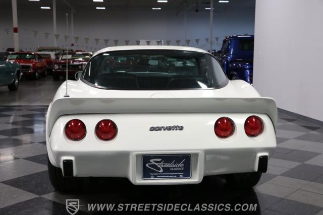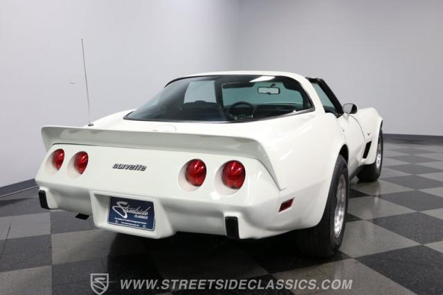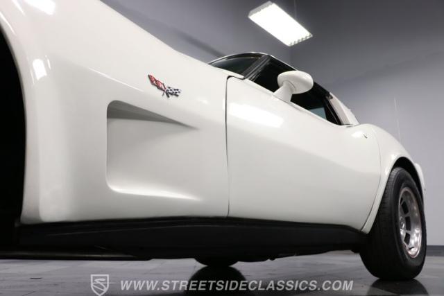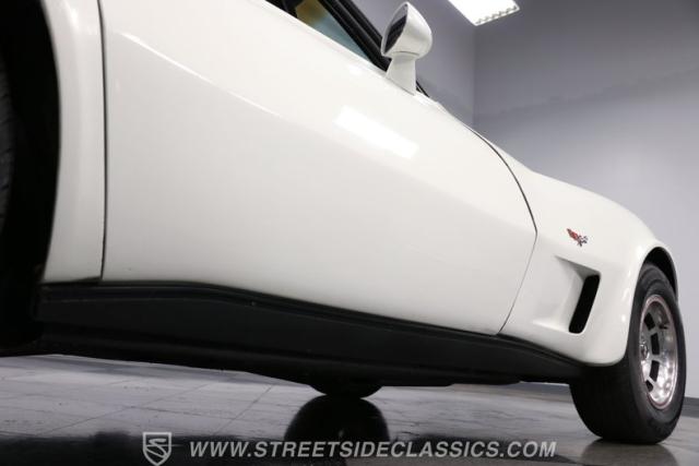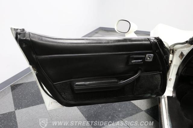 A Corvette in Classic White feels like a blank canvas. You can do everything from enjoying one of the most timeless colors around, or maybe you wrap the body in neon colors and promote your business. It\'s all about the potential this C3 has. The long hood with low hidden headlights, later fastback style, and clean lines remind you that all the fundamentals you want are already in place while having the right style and budget price to get you thinking about creating something more personal. There are already some fun additions, like the full-width rear spoiler, rocket-like tail lights, and pace car-style YJ8 alloy wheels (the red line looks partially distinctive against the white.) It gives this the right touch of individual style without going over the top. So we bet it\'ll inspire your customization.