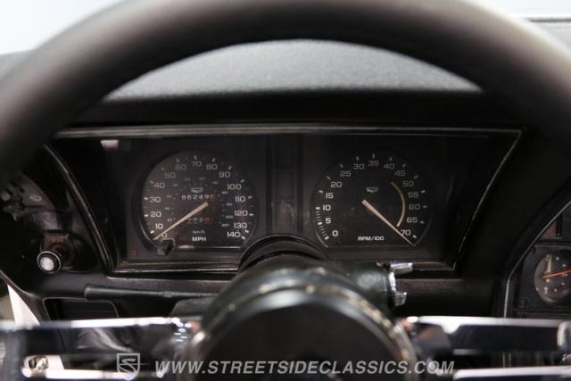 The black interior has a nice look against the white exterior, giving you one of the most appealing color combos. So you\'ll like taking the T-tops out and sharing this with the world. In fact, with comfy cloth inserts on the seats, this Corvette is quite a nice sunny day friend. You\'ll also like it because it\'s loaded with features like power windows, power locks, an AM/FM stereo, and provisions for air conditioning (it will need servicing to blow cold again.) These later C3s were known for their body-hugging bucket seats. This combines the upgraded sports steering wheel on the tilt column to give you the commanding kind of driver\'s feeling that makes the Corvette a true friend of the open road.