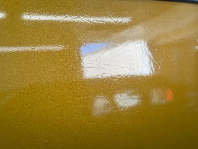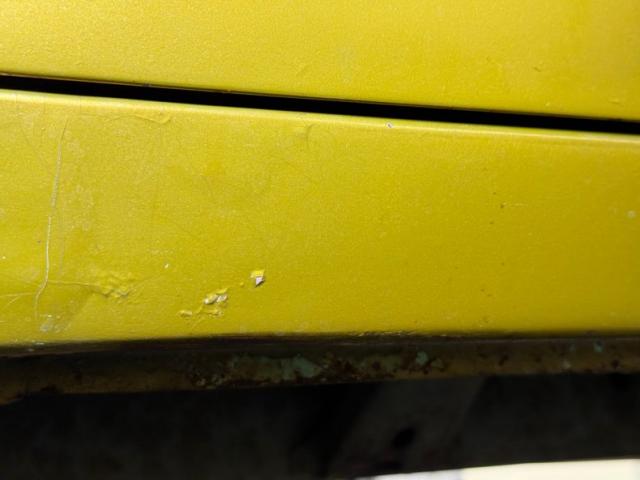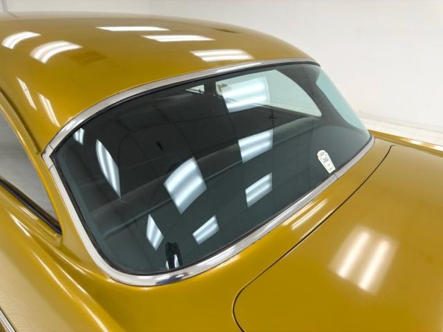 Single stage Mustard Gold paint accented with both the classic trim of a \'57 that includes massive chrome bumpers front and rear. If there\'s a better, more interesting trim feature than the torpedo shaped ornaments embedded in the hood that front rounded rises which travel rearward, we can\'t think of it. The torpedo vibe is doubled by the rubber bump stops pointed your way, and the amber inboard marker lights really pop in front of the grated grille. 14-inch Chevrolet Rally wheels with knock offs look sharp and wear 215/70R14 tires that keep the car correctly level. That gold B-pillar makes this a sedan and gives this hefty car visual strength as the long roof slopes to the curved rear window with straight A-pillars that take in the curved front. Imperfections include cracking paint, chips, bubbling, peeling, and some touched up mars.