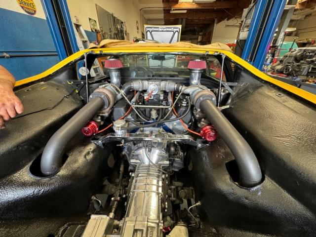 Custom twin turbo system installed with wastegates for reliability