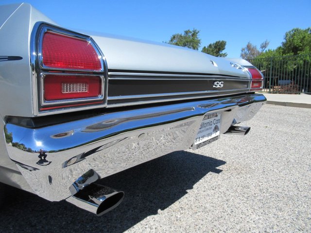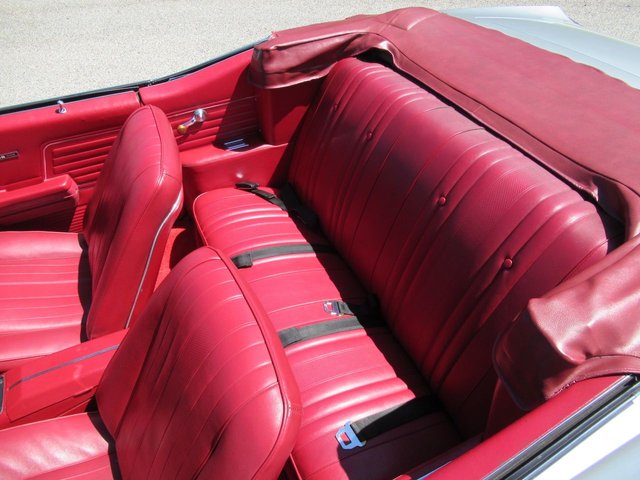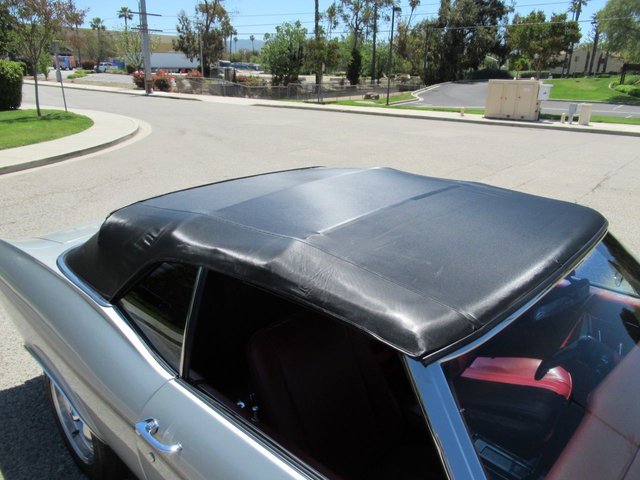 Take a look at this beautiful rare Cortez Silver Chevelle ragtop! Everyone loves a Chevelle but throw in a chance to put the top down and now your talkin. This one is fitted with the SS trim including the steel SS hood with twin grilles, SS badging throughout, black side stripes and correct style dual exhaust tips. Under the hood sits a GM Performance ZZ4 350 Crate motor rated at 355 Horsepower and 405 lbs of torque. Not bad for a factory built reliable small block! These engines have a GM aluminum intake, aluminum heads, HEI ignition, Holley 4 barrel dual feed carburetor and a nice set of chrome Chevrolet valve covers. Other options include front disc brakes, power steering, factory A/C with R134 Freon upgrade and a set of Hedman headers with dual Flowmaster mufflers for a crisp muscle car sound. Power gets laid down to the road through a Turbo 350 Automatic transmission followed by a 10 Bolt Rear differential with freeway gears spinning a set of Silver 17 inch Rev wheels to fill the wheel wells. The black vinyl power top has a glass rear window for a clear rear view and the interior is finished in the correct Dark Red vinyl with Strato Bucket seats, center console with Horseshoe shifter, factory steering wheel with tilt column, a couple of under dash gauges with a Sun Super Tach and an upgraded custom factory stereo with auxiliary cord to play music from your device. This Black plated California car runs and drives great and is ready for summer cruising!