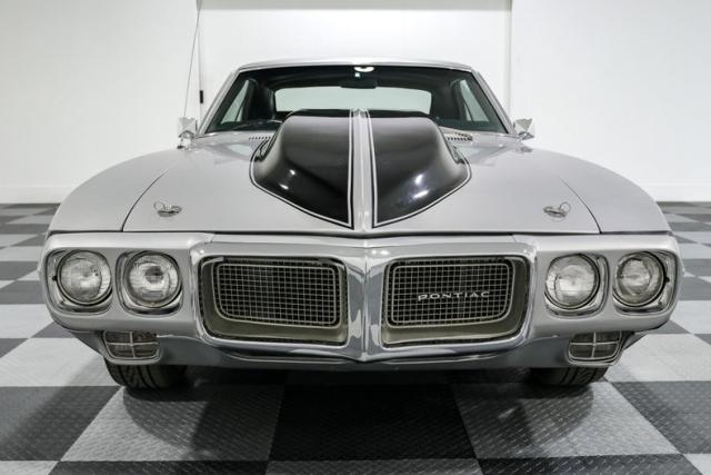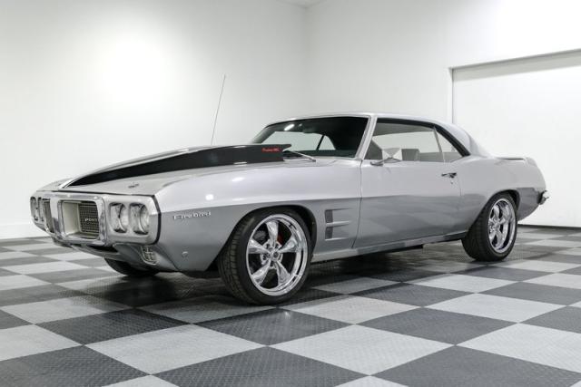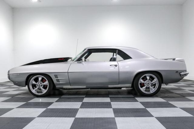 This Silver 1969 Pontiac Firebird Coupe brings the heat with a Butler Performance 461ci Pontiac V8 under that sinister black cowl induction hood. Topped with Kaufman aluminum heads and a Kaufman aluminum intake, fed by a Holley 4 barrel carburetor and lit by a full MSD ignition, this is traditional Pontiac power turned all the way up. An aluminum radiator with electric fan keeps things cool when the big cubes start flexing.