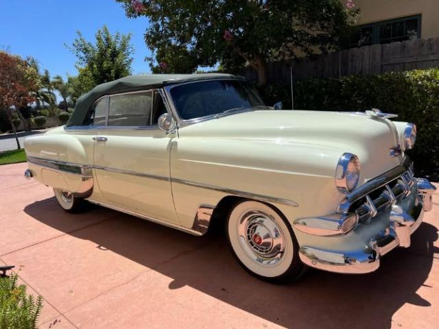 1954 Chevrolet Bel Air Convertible Blue Flame Six Powerglide This first-generation 1954 Chevrolet Bel Air Convertible was sold new at Community Chevrolet in Malden, Missouri and presents as a beautifully restored, well-kept classic that runs great. Drivetrain & Chassis: 235ci Blue Flame inline-6 2-speed Powerglide automatic transmission Independent front suspension (coil springs) Live rear axle with leaf springs Four-wheel hydraulic drum brakes Power steering New exhaust system Exterior & Restoration: Restored approximately 10 years ago Finished in original India Ivory with Bermuda Green side inserts New dark green power convertible top Dual Sealed Beam guide spotlights Excellent chrome and polished stainless Stock 15 wheels with full polished caps Interior & Features: Green interior in meticulous condition Fully detailed black trunk compartment Vent windows Summer & winter heater/defroster Electric clock Push-button AM radio Locking glove box with light Autronic-Eye A striking, correctly finished Bel Air convertible with classic styling, strong drivability, and excellent presentationready to enjoy. Important Information Please Read Before Inquiring Vehicle Location: This vehicle is located at our client\'s home, not in Cadillac, Michigan. Showroom Access: We have a showroom with approximately 35 vehicles, available by appointment only. Contact First: Please call us at 231-468-2809 EXT 1 to speak with one of our representatives before visiting. FREE Consignment Sell Your Vehicle Fast! List your vehicle effortlessly and get it sold in record time! Easy process High visibility Professional support https://www.classiccardeals.com/Page/Consignment.aspx
