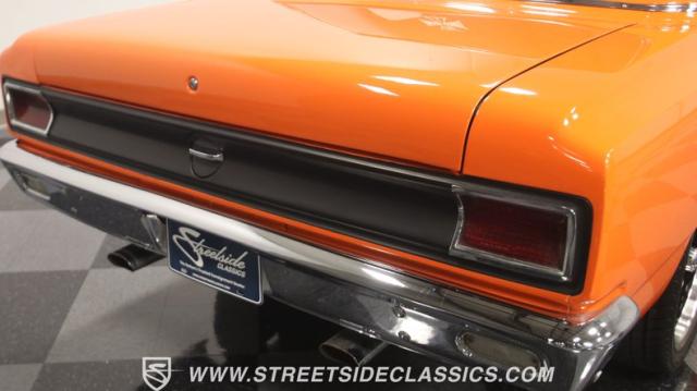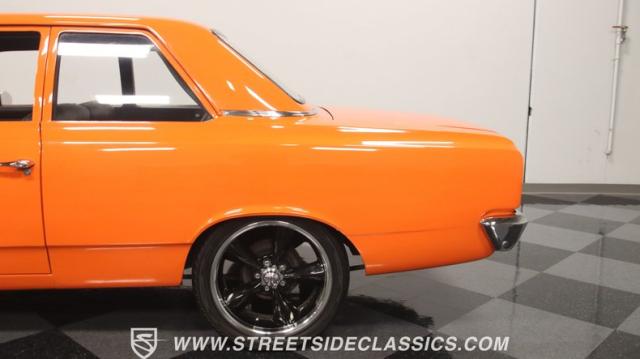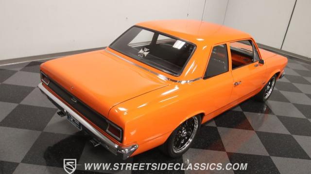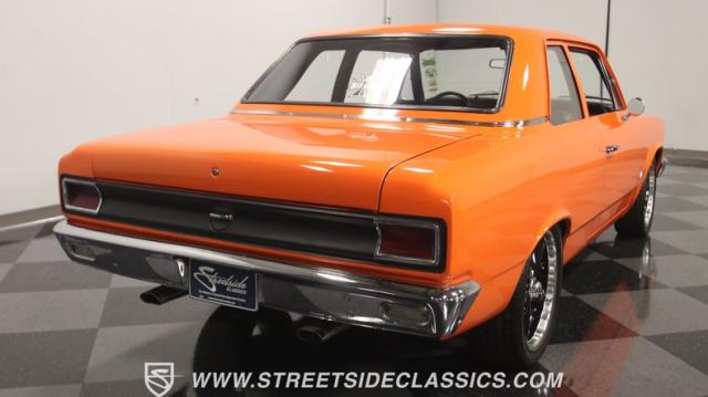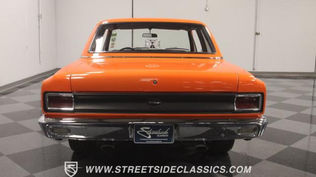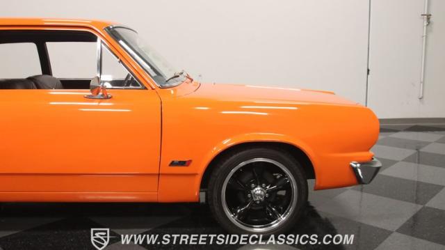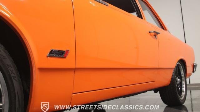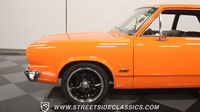 We love a good AMC because they represent a cool classic American. And since their production figures were lower than The Big Three, that makes for plenty of rare distinction on the classic car scene. But the distinction of this one goes much further than production numbers. It announces it\'s unique with the right well-placed upgrades. The orange paint has a vibrant style that gives this an aggressive impression. But there\'s also a touch of premium because the hue is said to be borrowed from the BMW M3 color palette, and it has a premium gloss that shows off this AMC\'s crisp and classic lines. There\'s a coordinated dark side contrast with the dark grille, blackout rear panels, and upgraded dark alloys. And speaking of the wheels they are staggered 17/18 inches front/rear for a nice stance, and that gets enhanced further because you can dial-in the height with the fully adjustable air ride suspension.