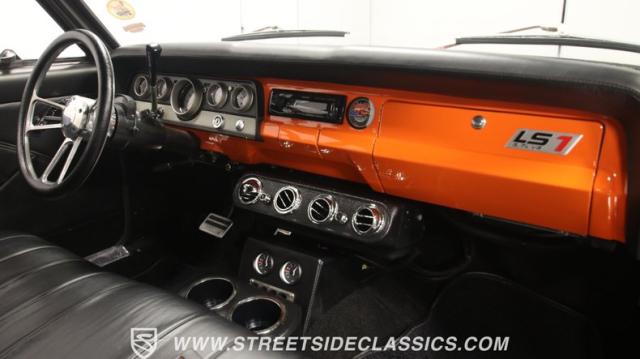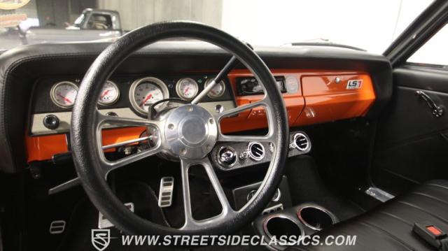 The engine bay has an awesome sense of style. All that darkness focuses your attention on the bold orange engine cover, and so you really notice the upgraded V8 heart. In fact, this 5.7-liter LS1 V8 has a cleanly installed style that almost makes this upgraded GM powerhouse look like it has always been in this classic AMC. LS power is the choice for the modern generation because they have a hardy and powerful reputation that\'s just like the old small blocks, but now with a modern fuel-injected smoothness. And when you add in details like an aluminum radiator with electric fans and a 4L60 four-speed automatic transmission with overdrive, there\'s an almost daily driver kind of appeal. Manual drum brakes give it the right touch of old-school feeling to remind you this restomod is still a classic, and if that\'s not to your taste, you also know there are a ton of ways to upgrade it. And upgrades like the rack & pinion power steering and grippy ZR-rated tires already elevate the driving experience.
