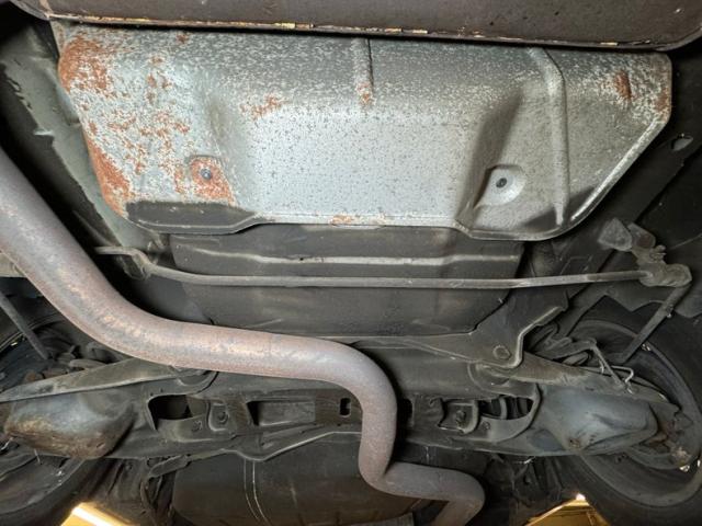 Driver quality underneath with some surface rust but no apparent leaks. There is grime build up on the knuckles, but the flat panels and other parts of the underside are relatively clean. The single exhaust travels through an original equipment muffler before exiting discreetly under the car, out of sight. Both front and rear have independent suspension with MacPherson struts in front and coil springs in back.