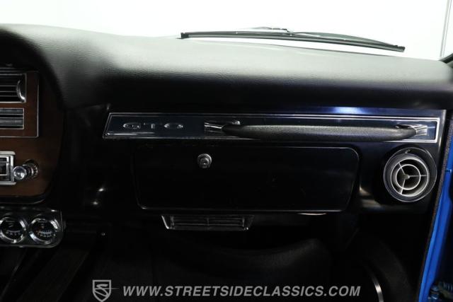 The 400 (YF code) cubic inch V8 dominates the engine compartment, topped with Pontiac\'s iconic Tri-Power 3 2-barrel carburetors. Finned aluminum valve covers and three chrome open-element air cleaners add visual appeal to the powerful motor. A dual exhaust system with performance mufflers produces the signature GTO sound. Power drum brakes on all four corners provide stopping power.