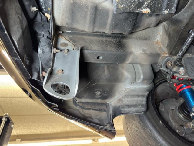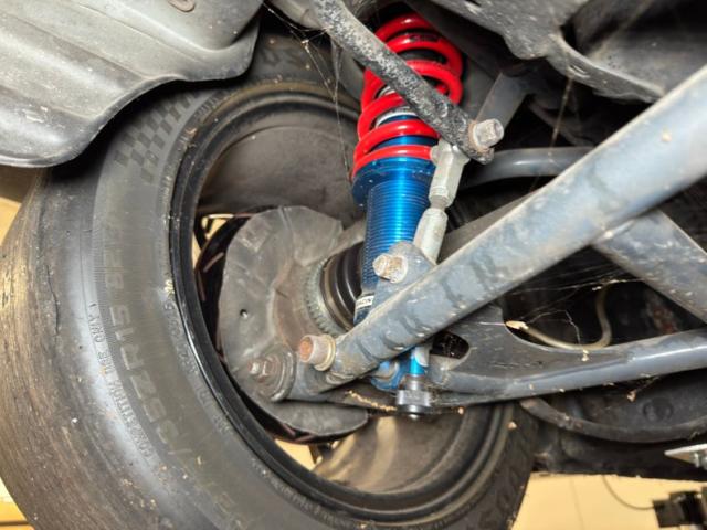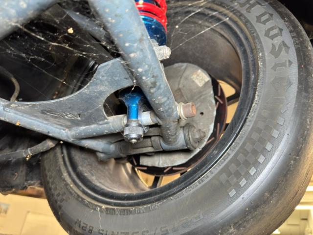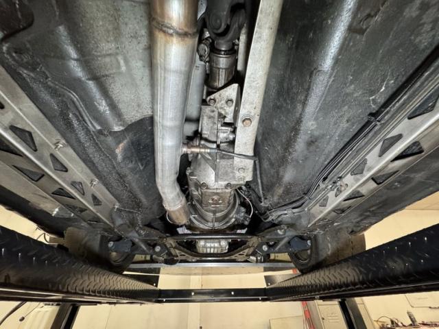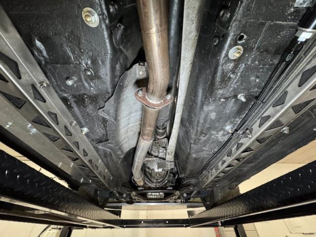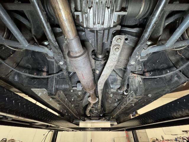 Along with the added tow hooks on the clean underside, we have Ohlins coilover suspension front and rear along with a single exhaust that flows through a glasspack style muffler before exiting out back. All clean underneath with added bracing and some heavy duty suspension arms.