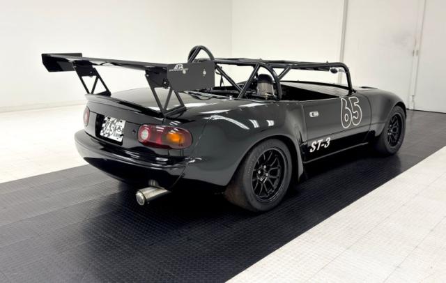 If you\'re ready to start, or continue your racing hobby, here\'s a fine machine to consider. The work has been done for you, it\'s only a matter of tuning the engine, loading up the trailer that comes with the car, and heading to the track, solo event, or hill climb. This is one bad to the bone Miata and if racing is your game, put your money down on black.