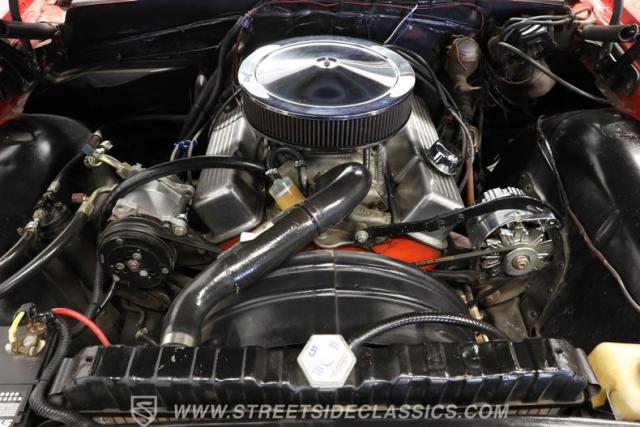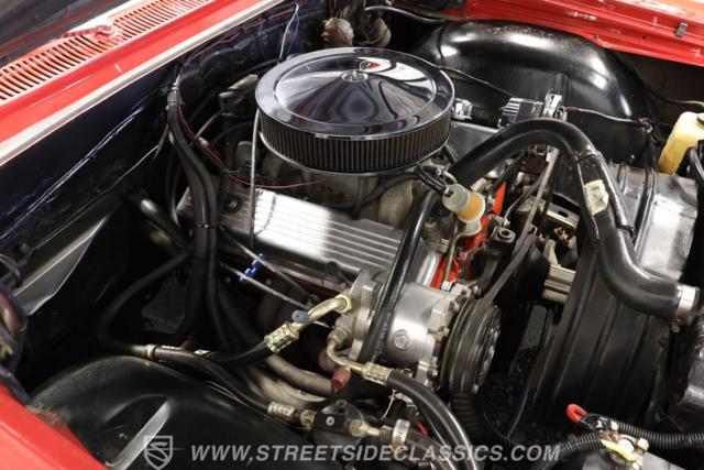 Raise the hood and you\'ll find the original 327-cubic-inch V8 still holding court in a tidy, well-sorted compartment, surrounded by a solid-looking firewall and inner fenders, with fresh hoses and properly routed wiring in full view. Equipped with both a Holley four-barrel carburetor and an aluminum intake manifold from the same manufacturer, the engine is in fine form, starting up promptly and pulling with plenty of enthusiasm as it pairs with a 4-speed manual Muncie transmission that puts full control of its output in the hands of the driver via a floor-mounted shifter. Long tube headers leading to a dual exhaust that terminates in a pair of Edelbrock mufflers minimize back-pressure while yielding a fitting sound for a venerable ride like this.