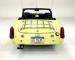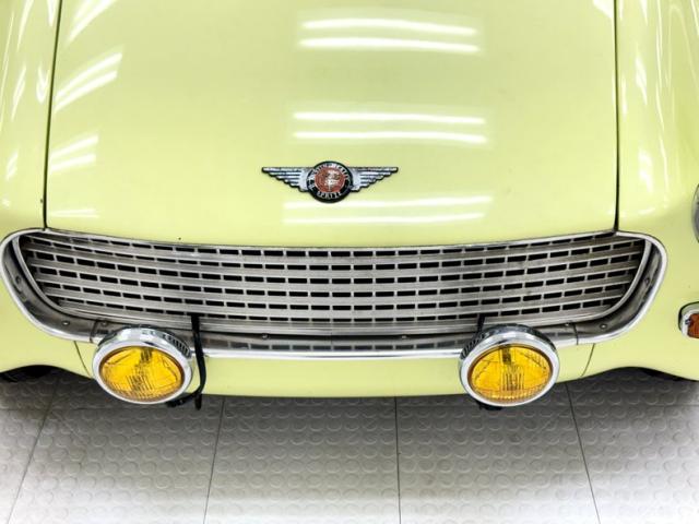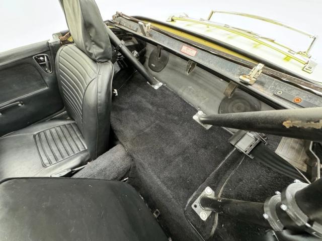 Everyone knows they\'re cute and this little Sprite provides even more whimsy with its coat of Sunshine Yellow. The smiling face begins with a grinning egg crate grille behind a pair of yellow rally lights, and capped with the Austin-Healey winged logo. Rock guards protect the round headlights, while amber marking lights sit below and on the fender for side visibility. A luggage rack on the trunk lid provides some extra storage on a car with limited available space and the elongated tail lights occupy most of the rear fender, while reverse lights are inset on the rear fascia. Twin chrome exhaust tips protrude from under the car and provide a race inspired view for those behind. That\'s also the case with the roll bar which rises high above the seats and instills confidence in turns just in case the 13-inch wheels with 155/80R13 tires break loose with some spirited driving. Those black wheels have Austin-Healey engraved dog dish hubcaps and silver rims and despite the myriad of aftermarket wheels Austin owners might use, we like the stock look of the \'dogs. Imperfections are few but include some minor rust around bottom edges, more significant where the black filler coats the rear fender bottom, a few paint chips here and there, and an occasional touch up.