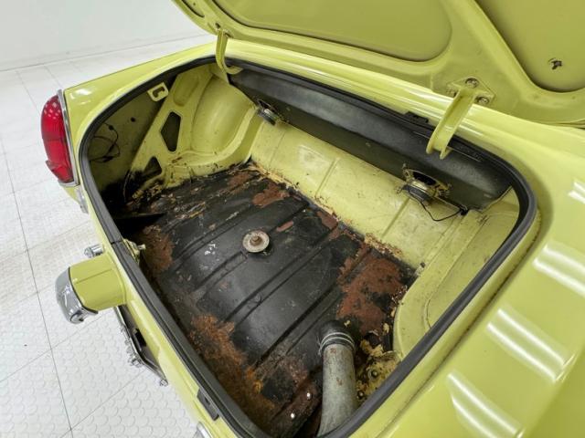 Driver condition under the hood as well where we find the 1275cc inline 4 cylinder engine rated at 62 horsepower. The bay, as well as the trunk, show some surface rust, pitted in some areas and ripe for encapsulation and paint. Meanwhile, the engine is fed by SU HS2 1 barrel carburetors and put into motion via a 4-speed manual transmission sending power to the rear wheels and 4.22 gears. Disc brakes are found in the front and rums in the rear.