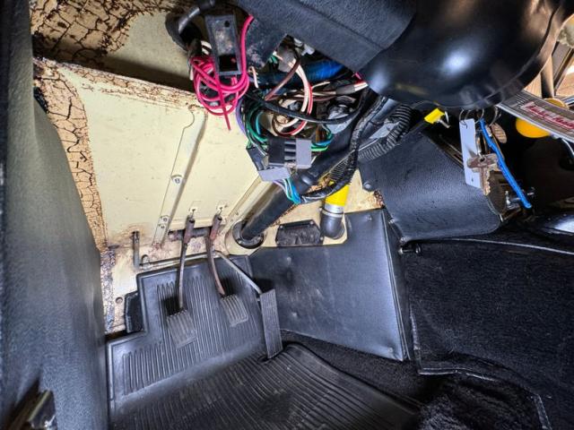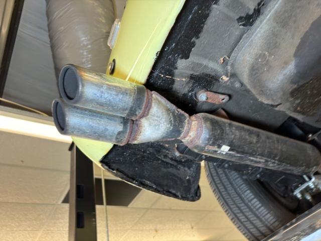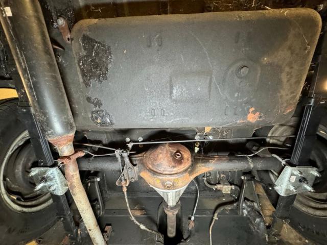 The monocoque construction of the car results in some flat belly pans with the single exhaust running below them, straight back and entering a glasspack style muffler before passing the bumper with the twin tips. Coil springs are up front and leaf springs are out back. There are areas of surface rust, not unexpected and a few drops of oil on the oil pan, but generally clean and dry underneath and ready to hit the streets!