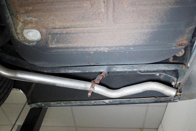 Clean with an ample application of rustproofing texture coating is seen throughout and even surface rust hasn\'t dared to rear its head save for the untreated components. All strong and black for the frame, flooring, rockers and suspension with only a light dusting of surface rust where the paint was thinly applied. Independent coil spring suspension up front and a 3 link with coil springs in the rear provides the ride, and the power drum braking brings you back to earth safely. Also, a stock style dual exhaust system is seen snaking its way rearward from the Nailhead under the hood.