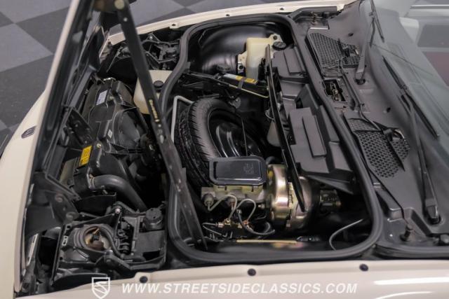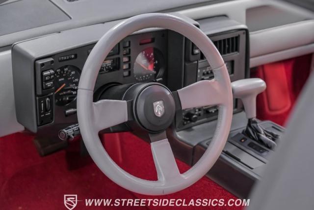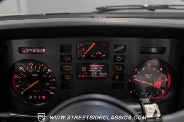 This 1984 Pontiac Fiero Indy Pace Car represents racing heritage as one of only 2,000 produced, and made history as the first mid-engined pace car until the C8 Corvette. The white exterior amplifies its athletic profile, enhanced by the iconic Indy graphics and gray ground effects. A rear spoiler adds to its racing-inspired design, while body-colored 14-inch wheels wrapped in Firestone Indy 500 215/60R14 tires maintain its authentic appearance. The factory pop-up sunroof opens to let the fresh air flow while you drive.