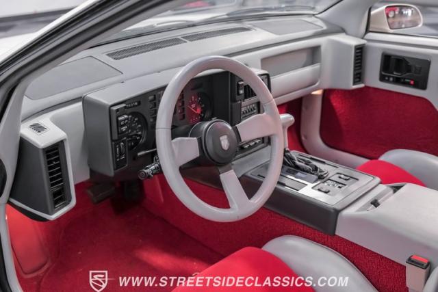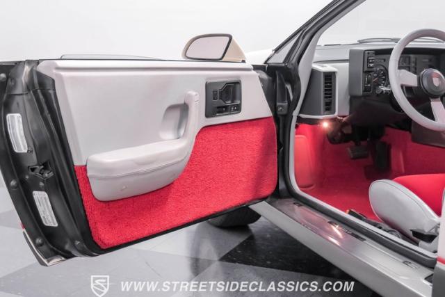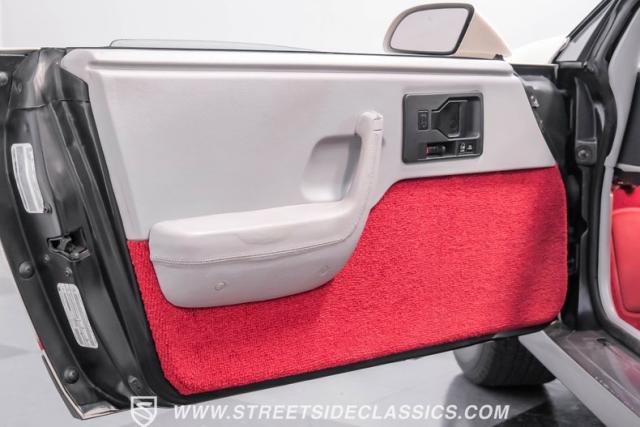 The gray interior with red accents showcases its exclusive Indy Pace Car design elements. Bucket seats provide excellent support, while the center console houses the floor-mounted shifter. The full array of power amenities includes windows, locks, and mirrors. A factory AM/FM cassette stereo and air conditioning keep you comfortable, while the tilt steering column and cruise control add to the driving experience.
