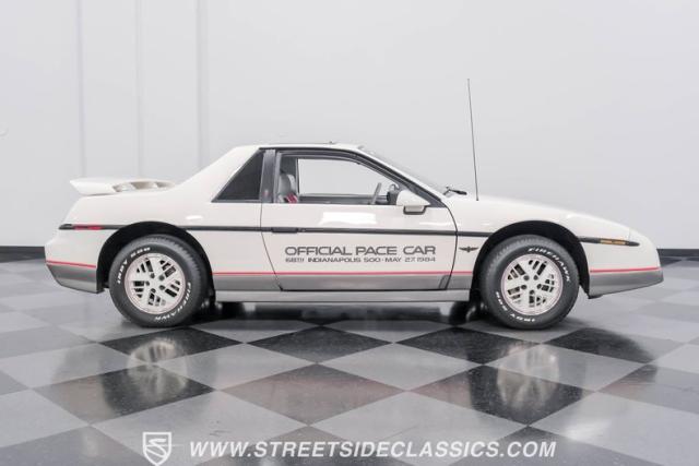 Here\'s a rare opportunity: a 17,840-mile 1984 Pontiac Fiero Indy Pace Car with its original powertrain, special interior, and authentic Indy graphics. One of just 2,000 built, this piece of racing history awaits. Call today!