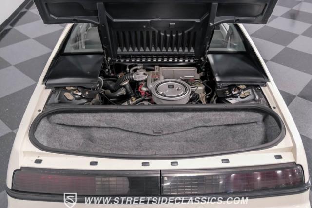 The mid-mounted 2.5L 4-cylinder engine with electronic fuel injection delivers power through a 3-speed automatic transmission to the rear wheels via the transaxle. The suspension features coil springs and shocks up front with struts in the rear for balanced handling. Four-wheel power disc brakes bring everything to a controlled stop. The clean engine compartment displays careful maintenance throughout its low-mileage life.