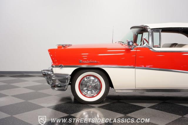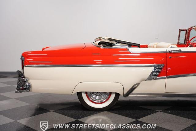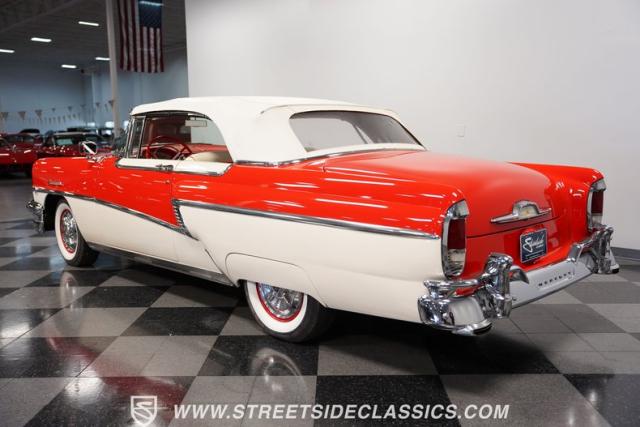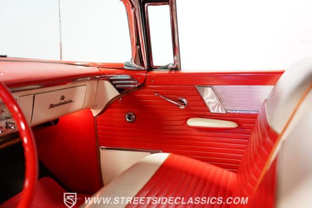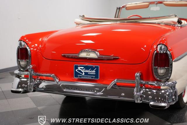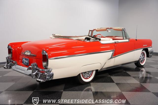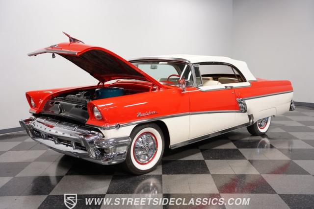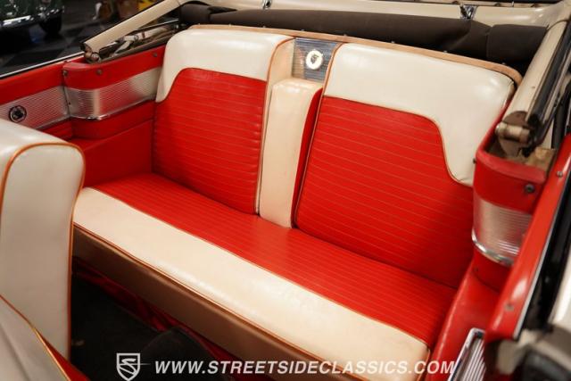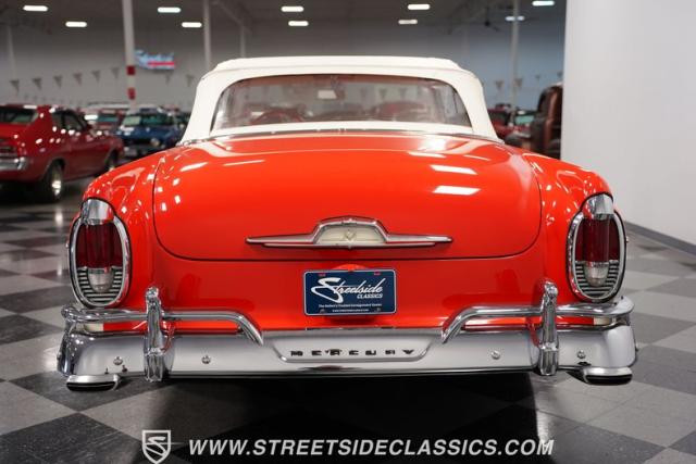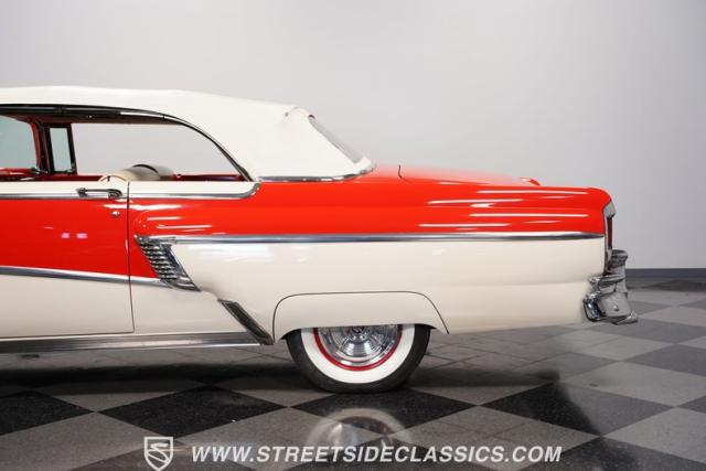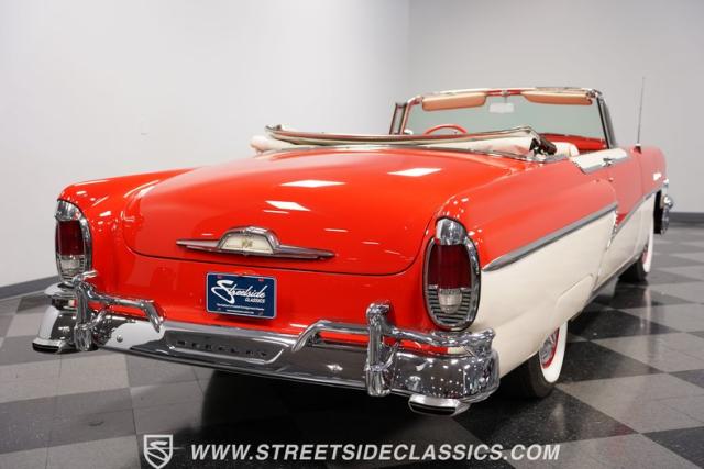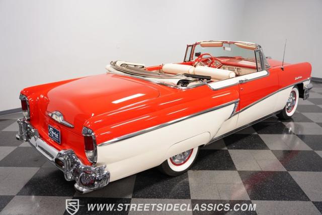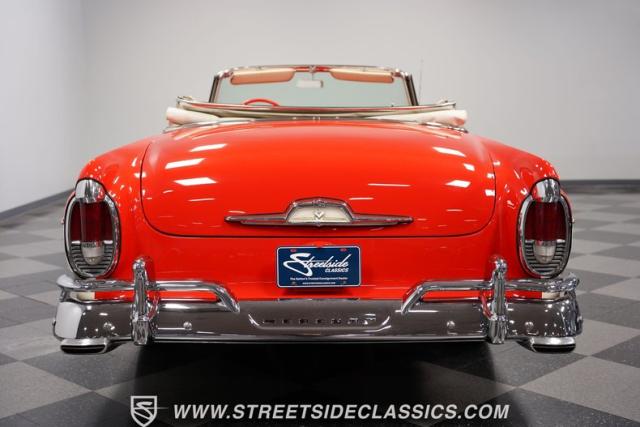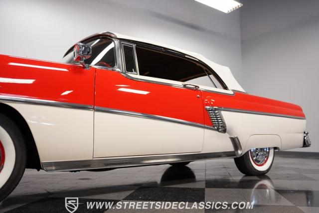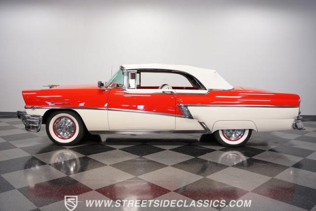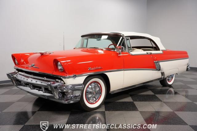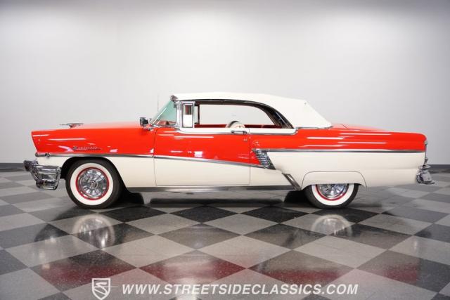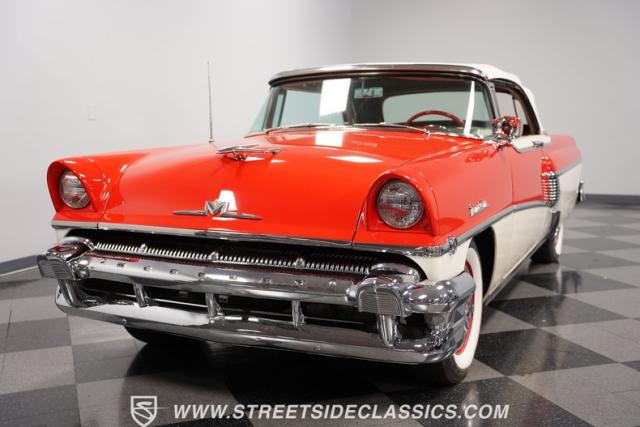 This 1956 Mercury Montclair Convertible, with vibrant red and white paint and lavish chrome accents, is a quintessential expression of 1950s automotive style. Its sweeping lines and gleaming details evoke an era of boulevard cruising and carefree elegance. The white power convertible top adds a touch of sophistication, ready to transform this Mercury into an open-air cruiser with undeniable appeal.