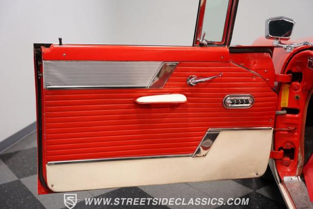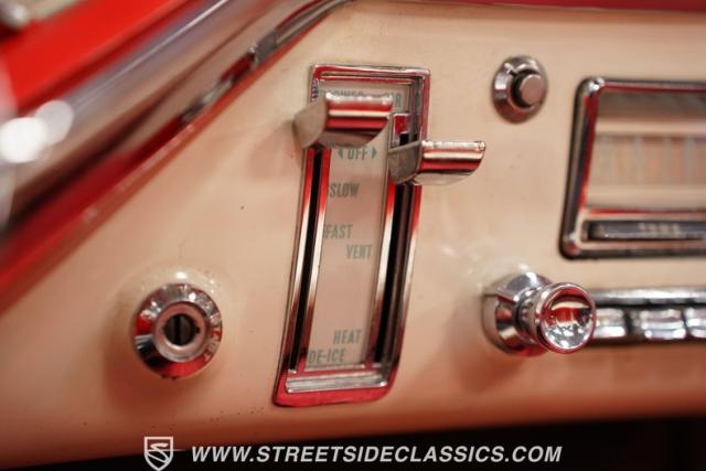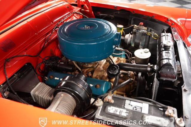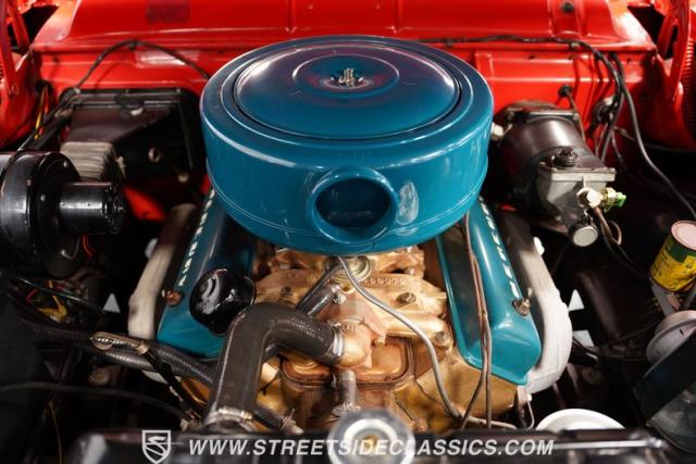 The spacious Red and White Interior features Vinyl Bench Seating, echoing the car\'s bold exterior design. The classic dash, adorned with Original Gauges and Chrome Trim, transports you back in time. Enjoy vintage tunes on the AM Radio while the Power Windows add a touch of modern convenience. Shifting gears is effortless with the Column Shifter, and Dash-Mounted Courtesy Lights illuminate the cabin after dark. Even the Clock adds a touch of period-correct detail.