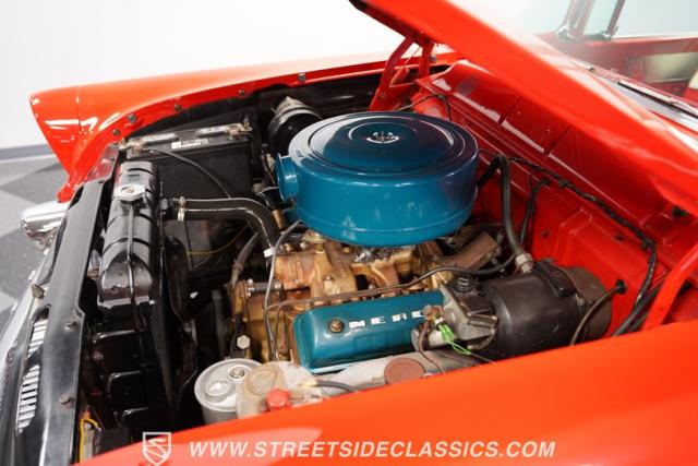 A 292 cu. In. V8 Engine (ECZ-A Block) powers this 1956 Mercury Montclair Convertible, delivering a classic 1950s driving experience. Effortless cruising is guaranteed with the smooth-shifting 3-speed Merc-O-Matic Automatic Transmission and Power Steering. Drum Brakes provide reliable stopping power, while the Dual Exhaust with Smithy\'s Mufflers adds a satisfying V8 rumble. The 12V system ensures worry-free starts, letting you focus on enjoying the ride.