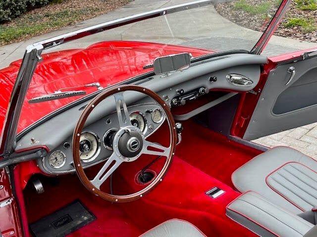 1962 Austin-Healey 3000 2+2 Deluxe Roadster Finished in Stunning Signal Red, Red Hardtop, Grey Soft Top and Tonneau, this Rare Big Healey underwent a Professional Multi Year Fully Photo Documented, Open Check Book Rotisserie, Nut and Bolt Restoration including Exterior, Interior, Brightwork, Tops, and Mechanics. Total Investment exceeds $100K. Options include: 4 Speed Transmission Fully Synchronized Electric Overdrive Highly Desirable for Touring Full Instrumentation Tachometer Oil Pressure Water (Temp) Fuel Turn Signal Indicators Telescopic Steering Mahogany (3) Spoke Steering Wheel Manual Choke Push Starter Button Smiths Deluxe Heater/Defrost System 6 Cylinder Engine 2,912 Cubic Centimeter Displacement Triple Solex HS4 Side-Drafts Carburetion (Only available in 62) 136 HP 3.3 in / 3.5 in Bore/Stroke 9.0 : 1 Compression Ratio 115 MPH Top Speed Show Quality Engine Compartment and Undercarriage Stainless Dual Exhaust System 2,470 LBS Weight New (Deluxe 2+2 Roadster) Seating Capacity 2+2 Length, Width, Height 157.5 in, 60.5 in, 50 in Wheelbase: 92.0 in Disc Brakes (To Front) Chrome Wire Wheels (5) Side Knock-Offs V Rendstein Radials (5) 165 HR 15 86H Interior finished in Exquisite Connally Hydes Beautiful Red Piping Trim Throughout BHT Certification Wilton Wool Carpeting Ancillary Under Dash Parcel Shelf Leather and Carpeted Cup Holder Rare Factory Hardtop Canvas Tonneau and Soft Top Front and Rear Chrome Bumperettes Drivers Handbook Of the small number of Deluxe 2+2 Roadsters produced in 62, Only a limited number exist today in this Magnificent Color Combination and Condition. It is Pristine Throughout, Ready for Show or Tour. Garners all the Oohs and Aahs anytime out. Please Note The Following **Vehicle Location is at our clients home and Not In Cadillac, Michigan. **We do have a showroom with about 25 cars that is by appointment only **Please Call First and talk to one of our reps at 231-468-2809 EXT 1 ** FREE Consignment Visit Our Site