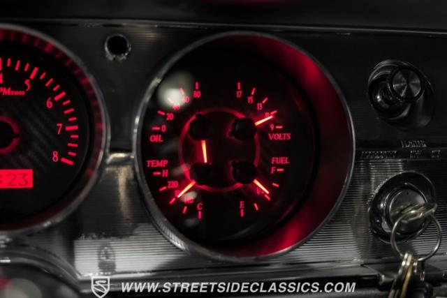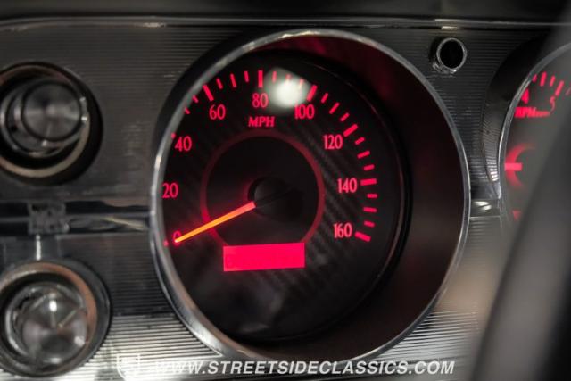 Within its confines, a realm of black leather offers an embrace of luxury seldom found in such spirited vehicles. The cockpit is a symphony of bespoke elements, from the embrace of custom Pro Car seats to a center console that not only serves as a command center but also charges your devices wirelessly. The auditory experience transcends the ordinary with a sound system investment surpassing $20,000, complemented by LED illumination and visual entertainment options that ensure every journey is an event. Instrumentation by Dakota Digital blends seamlessly with the interior\'s modern classic theme, all under the command of a steering wheel by Billet Specialties, a true mark of craftsmanship and aesthetic appeal.