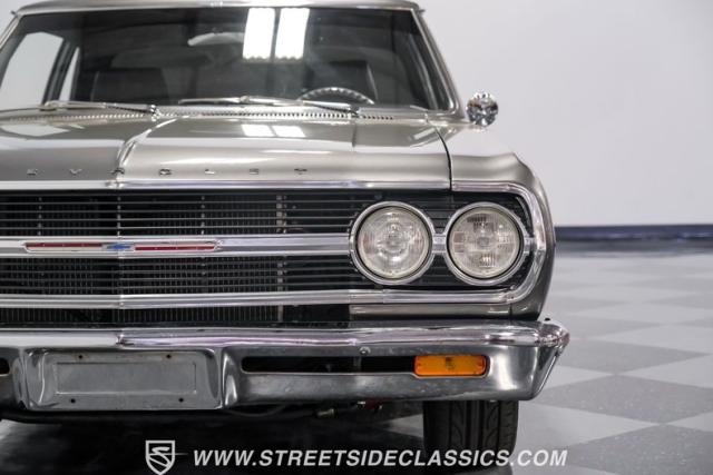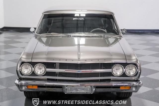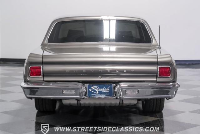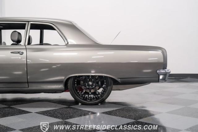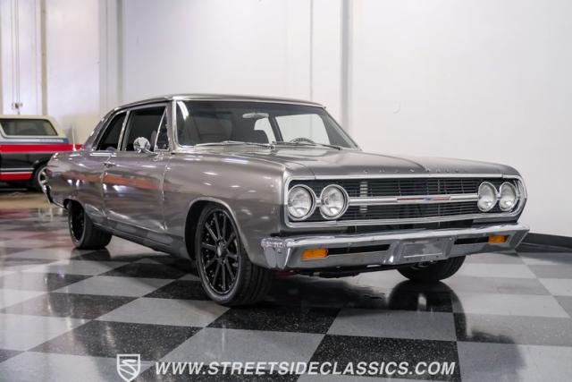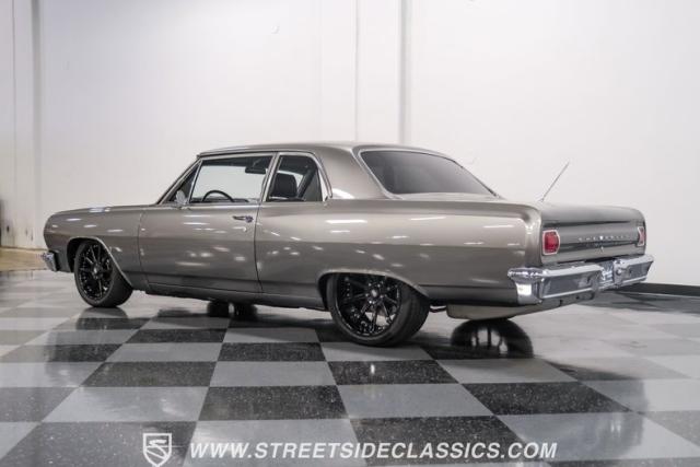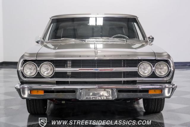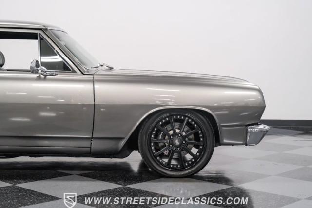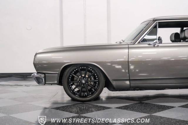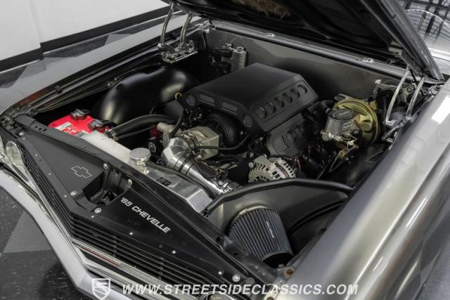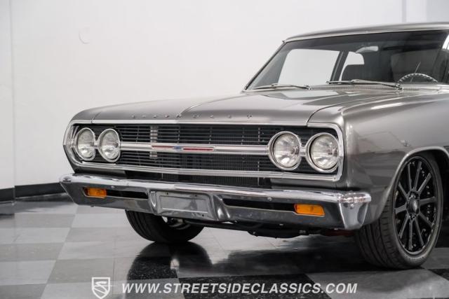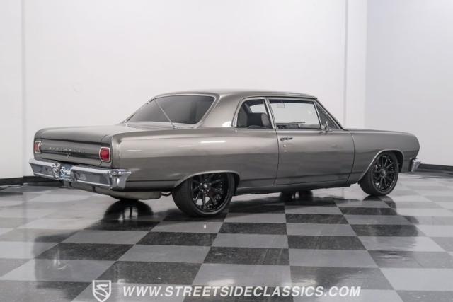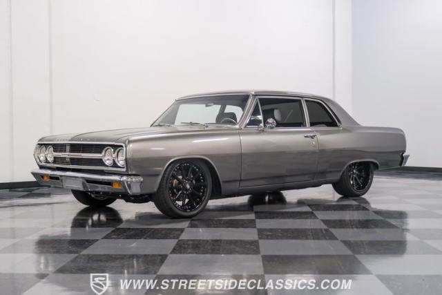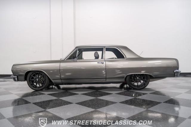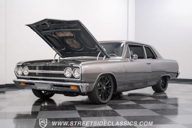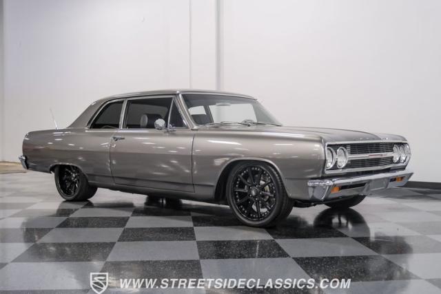 Glancing at this 1965 Chevrolet Chevelle 300 Restomod, its Gunmetal Gray Metallic hue captures the essence of the streets it was meant to dominate. Mounted on bold 18\" and 19\" wheels encased in Hankook rubber, this Chevelle showcases an allure that\'s hard to resist. Enhanced by a meticulous repaint during its extensive restoration, the finish gleams with a depth that mirrors the endless possibilities of the open road. This vehicle asserts its presence with an elegance that belies its formidable capability, featuring contemporary enhancements like tinted glass and gleaming new gun black wheels.