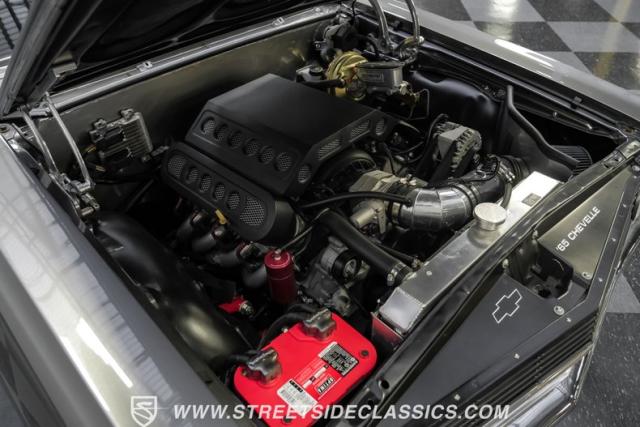 Propelling this Chevelle is a 5.3L LS V8 Vortec engine, a modern marvel that infuses this classic with the pulse of today\'s technology. Adorned with an LS2 intake and fuel rails, and animated by a custom ground comp cam, this powerplant\'s voice is a deep growl through Borla dual exhaust. A 5-speed manual Tremec TKO600 transmission channels this vigor to the asphalt, while a Moser engineered 9-inch rear with 3.50 gears and Trutrac posi ensures that power translates to a dance of precision and agility on any road. Underscored by the assurance of power disc brakes all around, featuring Wilwood brakes with drilled and slotted front disc rotors for uncompromised stopping power. With a chassis that\'s been honed to perfection through a tubular A-Arm and a 4-link rear suspension, all designed to marry power with poise.
