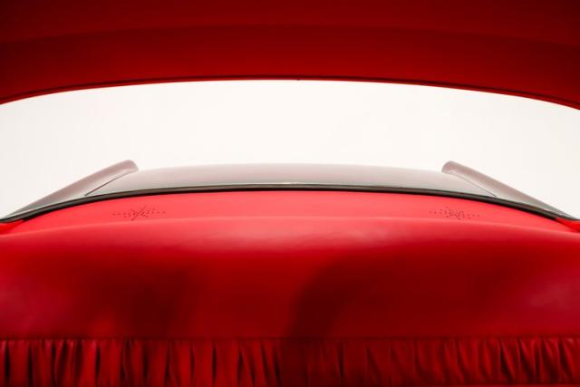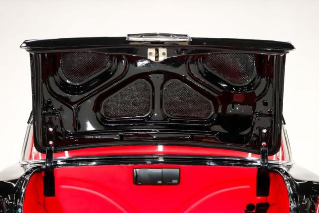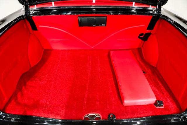 TRUNK COMPARTMENT: Under the trunk lid and in the jamb, the paint is finished slick just like the exterior. Inside, it\'s detailed to match the interior with a stunning red finish, fully boxed and upholstered for a clean, custom look. The carpeted floor adds a refined touch and there is even a CD changer for added convenience.