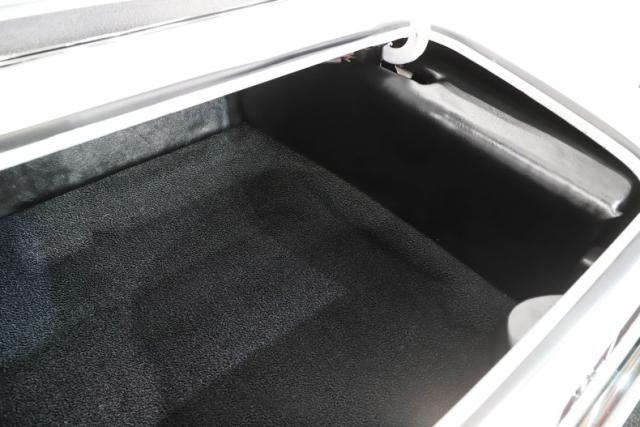 TRUNK COMPARTMENT: Under the trunk lid and the jamb are painted gloss white, the weatherstrip was replaced. Inside has a carpeted floor with boxed and upholstered side panels. The Optima battery is relocated behind one of those panels.