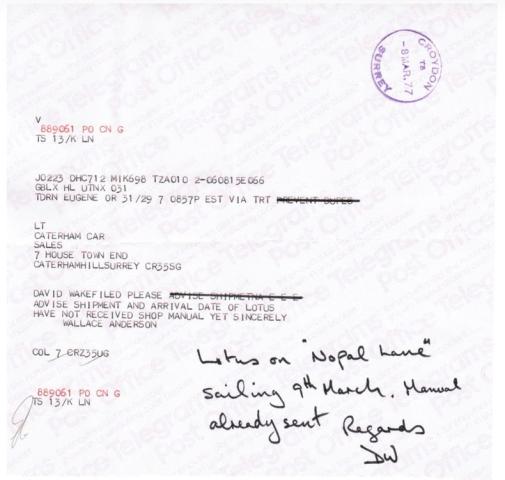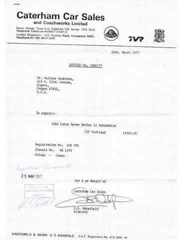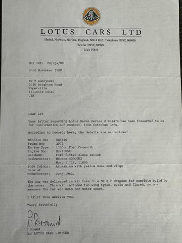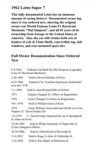 *Ordered New By \"MAL SIMPSON\" (Lotus\' F1 Race Mechanic)