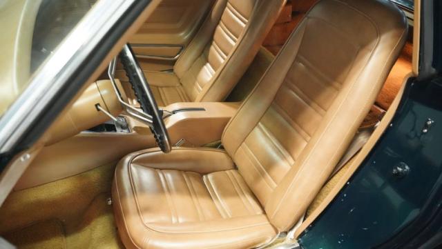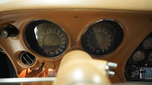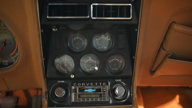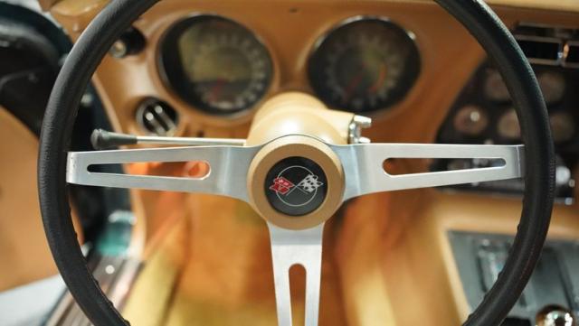 Powering this Corvette is the numbers-matching 350 cubic inch V8 L48 engine, a powerhouse of American muscle. The single 4-barrel carburetor ensures smooth fuel delivery, while the dual exhaust system produces a satisfying growl. Power flows through the 4-speed manual transmission, offering precise control for an engaging driving experience. The Corvette\'s legendary handling comes from its front coil spring suspension with shocks and sway bar, paired with a transverse leaf spring rear setup. Power steering and power front disc brakes provide confident control in various driving situations. A major service in 2023 included a new air conditioning condenser, ensuring the system runs at peak efficiency.