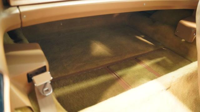 Inside, the Dark Saddle vinyl interior creates a rich atmosphere that complements the exterior. Bucket seats provide firm support during spirited driving sessions. The center console houses the shifter for the 4-speed manual transmission, placing it within easy reach. A driver-focused dashboard layout puts all gauges and controls at your fingertips. The cabin stays cool thanks to the air conditioning system, while an AM/FM cassette player provides entertainment for your drives. Custom floor mats add a personalized touch to the well-preserved interior space.