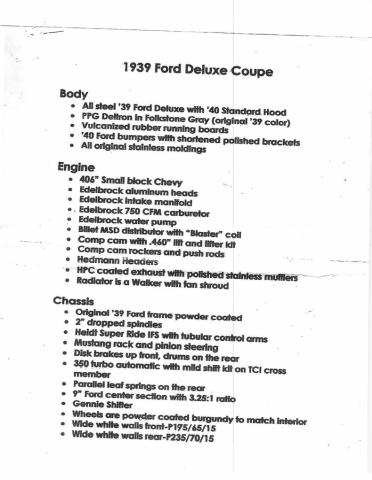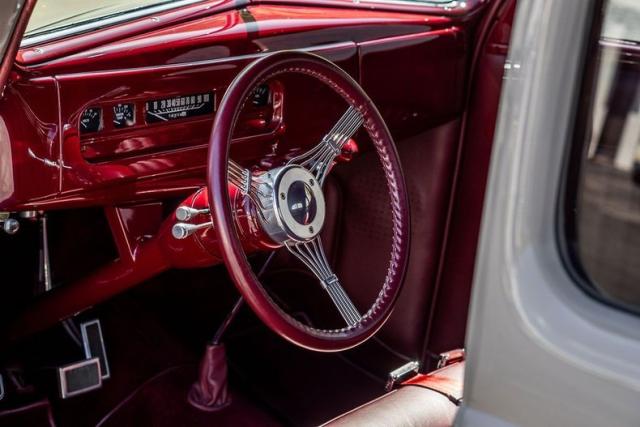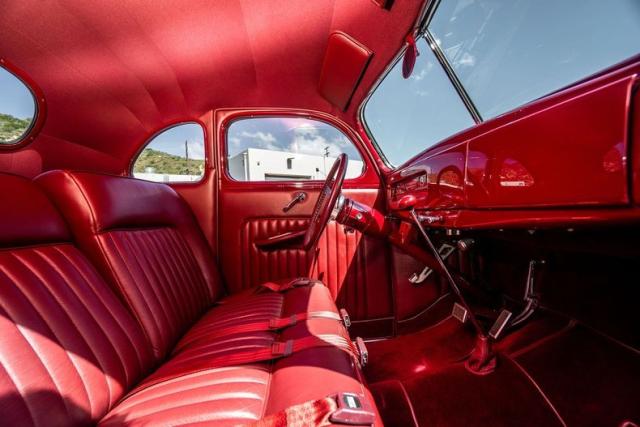 Beautiful all steel Deluxe Coupe that is well equipped, professionally built and easy to drive! This resto-mod was carefully built using top notch components including: Chevrolet 406 CID engine, aluminum Edelbrock intake manifold and heads, MSD electronic ignition, independent front suspension, power rack and pinion steering, 2\" drop spindles, power front disc brakes rear power drum brakes, 350 turbo automatic transmission with mild shift kit,Ford 9\" rear end with 3:25 gears, leather interior, restored original dashboard, tilt steering wheel, 6 CD changer,wool carpets, electric 2 speed wipers correct staggered style and size wheels/tires and a killer stance with just a touch of front rake!