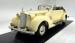 Packard Ivory was applied to this car after it was disassembled and stripped and covers the large panels and sweeping fenders in fine form. It coats the radiator shell which is sculpted to follow the contours of the long hood while the grille is topped by scalloped trim creating an exquisite, streamlined nose. The chrome was redone on the car 20 years ago and still looks good today. The bold front bumper creates the leading edge of the car in front of massive pontoon fenders, yellow fog lights, and headlights with descending trim that falls to the bumper. The graceful cormorant hood ornament shines bright, wing outstretched, and leading another trim piece that runs the center of the hood. Spare wheels are encased in color keyed holders, each fitted into the hand hammered steel hollow of the front fenders. The 16-inch wheels are also painted to match the car and wear beauty rings and proper Packard hubcaps. Our tan top is in excellent condition, redone 20 years ago and has never seen rain. The paint\'s creamy coverage of this car is excellent and we did not find any exterior flaws.