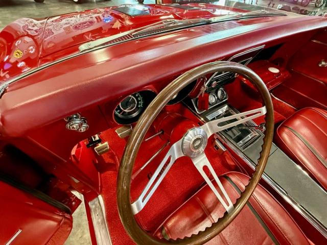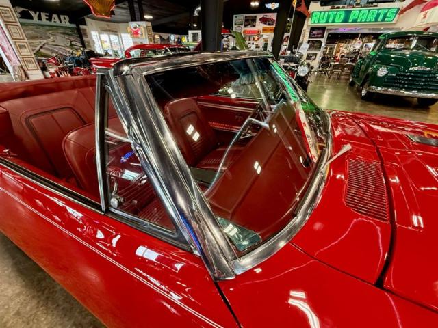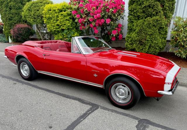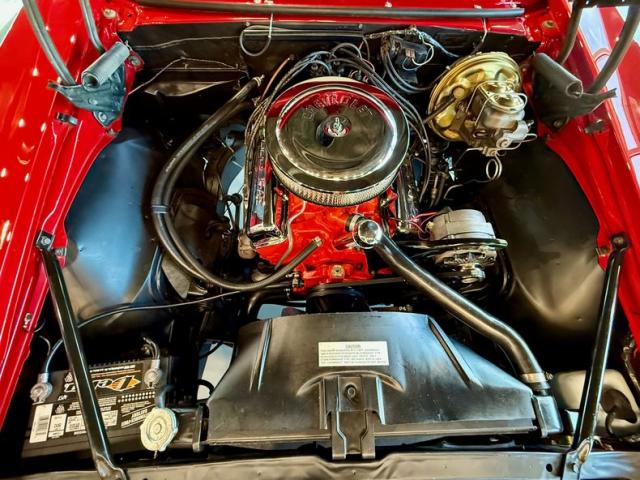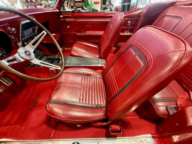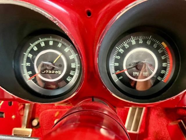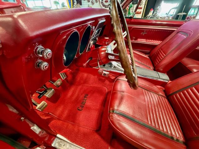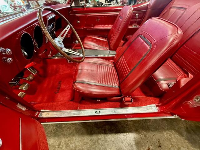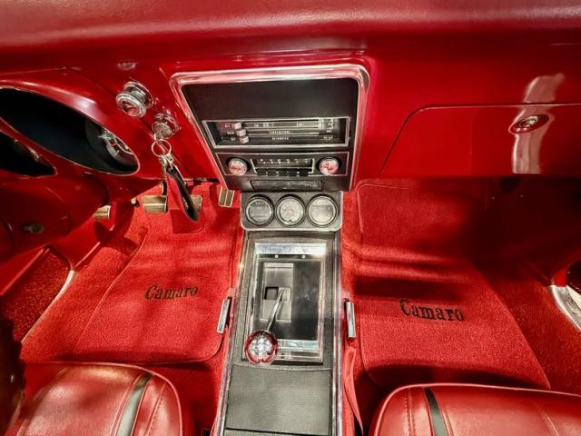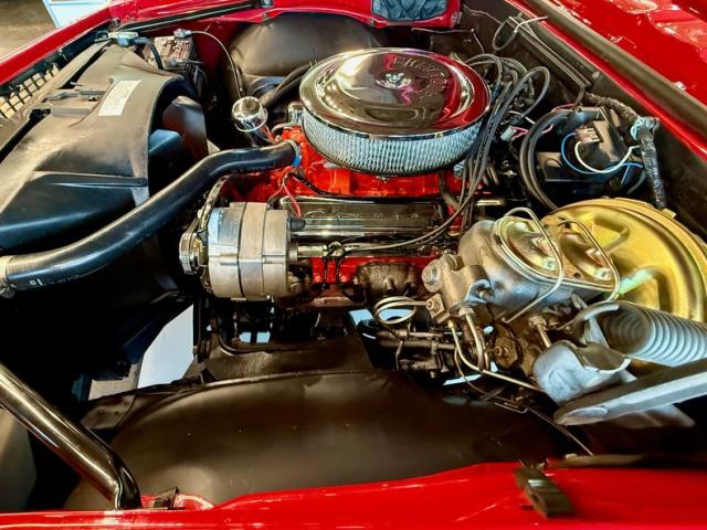 The car is finished in Bolero Red over red vinyl and powered by a numbers-matching 350ci V8 paired with a Muncie four-speed manual transmission Additional features include the Rally sport equipment package, the Z23 Interior Decor package, a power-operated soft tip, a push-button AM-FM radio, center console, hideaway headlights, and 14\" Rally wheels with chrome trim rings and hubcaps.
