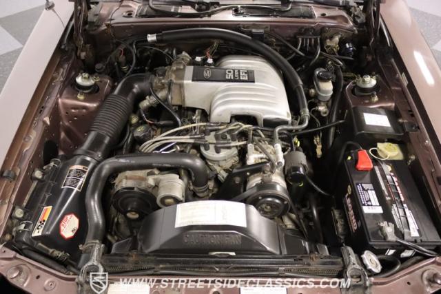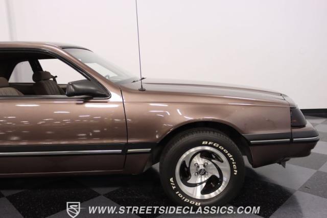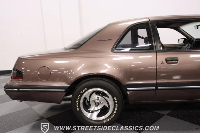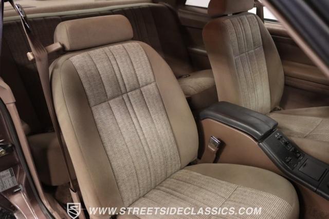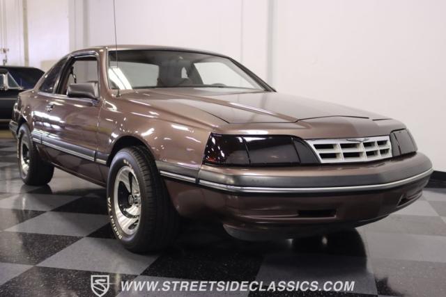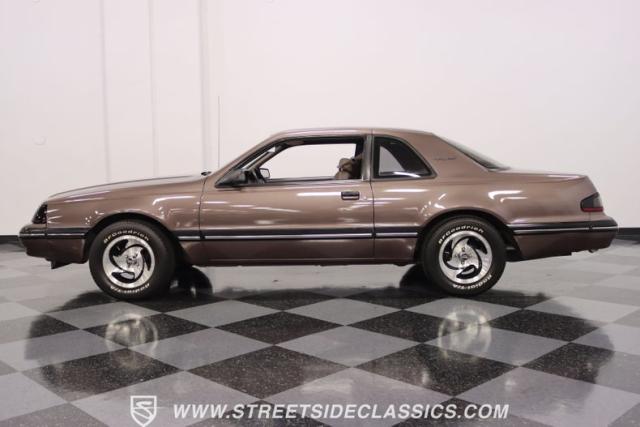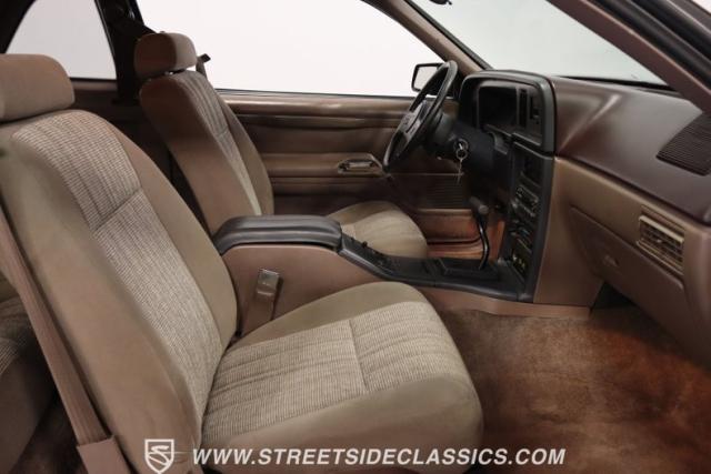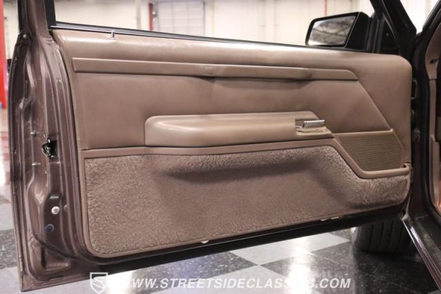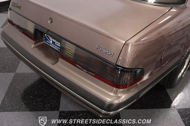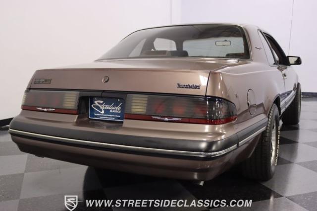 This Dark Taupe \'87 Thunderbird is a stylish survivor grade cruiser with echoes of 5.0L muscle rumbling beneath its sleek exterior. Tinted headlight covers add a touch of modern flair, while the iconic body lines flow smoothly under the Dark Taupe Metallic paint. Rolling on classic 15\" American Racing wheels wrapped in 235/60R15 BFG tires, it\'s a true vision of classic Ford style.