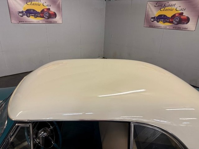 The lower part of the car is painted Sapphire Poly and the top is painted Malibu Ivory. The front & rear bumpers are like new, grill and headlight trim is like new. Tail lights and backup lights like new. Trunk emblem like new, trunk and hood center trim looks great. Indian trim hood head lights up with the headlights on. American Racing 5-spoke chrome rims with Coker wide white wall tires, door handles good, window trim like new, body side molding like new. Rocker trim molding like new, all the glass is good. New brakes and the original type. Good looker!