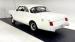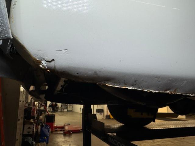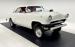 Leapin\' lizards the car is in the air in front...well, actually it\'s not it just looks the part. This is due to the front bumper being long gone, an I beam and just some leaf springs is for the front suspension. There is an aluminum bar replacing the front bumper and 15-inch Weld Draglite wheels add to the effect and these are wrapped by mini 25x7.50-15 rubber. The grille and its egg crate are now lost to time and there is however a central horizontal cascading chromed bar with a USN badge in the center, (\"Oh we are...the old one!\" Said the marching monkeys in the wizard of OZ.). The hood is pinned and has a \"merican\" flag in the center and directly behind is a hood scoop. On either side are a single bezeled circular headlight on the edge of the front quarters. As we move back, the car has its original doors and bump out rear quarters, and this is a good thing because now it\'s running on 15-inch American Racing Torque thrust wheels with big 295/50R15\'s on back. Smoke \'em if ya got \'em! Yellow traction bars are seen on the bottoms of the leaf springs. The roofline and windows are pure 1954 Merc with some black trimming weather-stripping. This presents a nice contrast to the exterior white paint which is very nice and has just a touch of rust and bubbles seen on its lowers. On to the back of the car where it\'s more \'54 Merc with a nicely rounded trunk and rear fenders that have some angled outward vertical wrap around tail lights. A matching wrap around to the undulating fender bumper is on and has a matte finish feel. Stickers for the rear glass, and hint of this snarling side winding exhaust pipes snaking and sneaking their way behind the front tires to a low end of the front quarter exit wrap the package up nicely.
